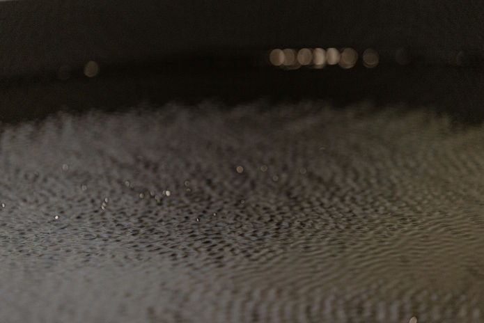 陳昱榮的〈南海〉、〈界線之外〉、〈臨界邊境〉等作品,皆尋找橋樑、渠道、水圳等河川流域中的界域分嶺,透過戶外身體量測,攝錄場域中的聲景,並使用程式將聲音的數據轉換為抽象的圖像,在聽覺與視覺之間來回翻譯,以便將聲音與圖像反覆疊加塑造。本展覽將陳昱榮的作品視為某種「書寫」,其與「聲音」的關係,更讓人進一步思考「漢字」使用者在不同地域與時代中皆可見的「語文脫節」問題。若謂黃柏皓作品中的書寫主體是「筆具」,那麼陳昱榮作品中的書寫主體則是「水域」。這些「非人」或是「諸物」,既不是「人」,更非「動物」,它們的「書寫」不被接受為「表意的姿勢」,我們該如何閱讀其「姿勢的失調」?